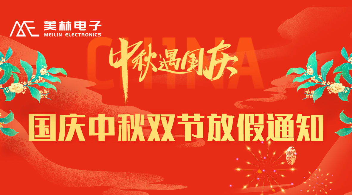 尊敬的各位客戶、各合作伙伴: 團圓慶華誕,雙節(jié)共歡騰。國慶中秋雙節(jié)將至,根據國家有關規(guī)定結合公司實際,放假安排如下:10月1日至10月8日放假休息,共8天,10月9日(星期四)正常上班。 感謝您一如既往的信任和支持。美林電子祝您財源廣進,團圓喜樂,闔家幸福,萬事如意!